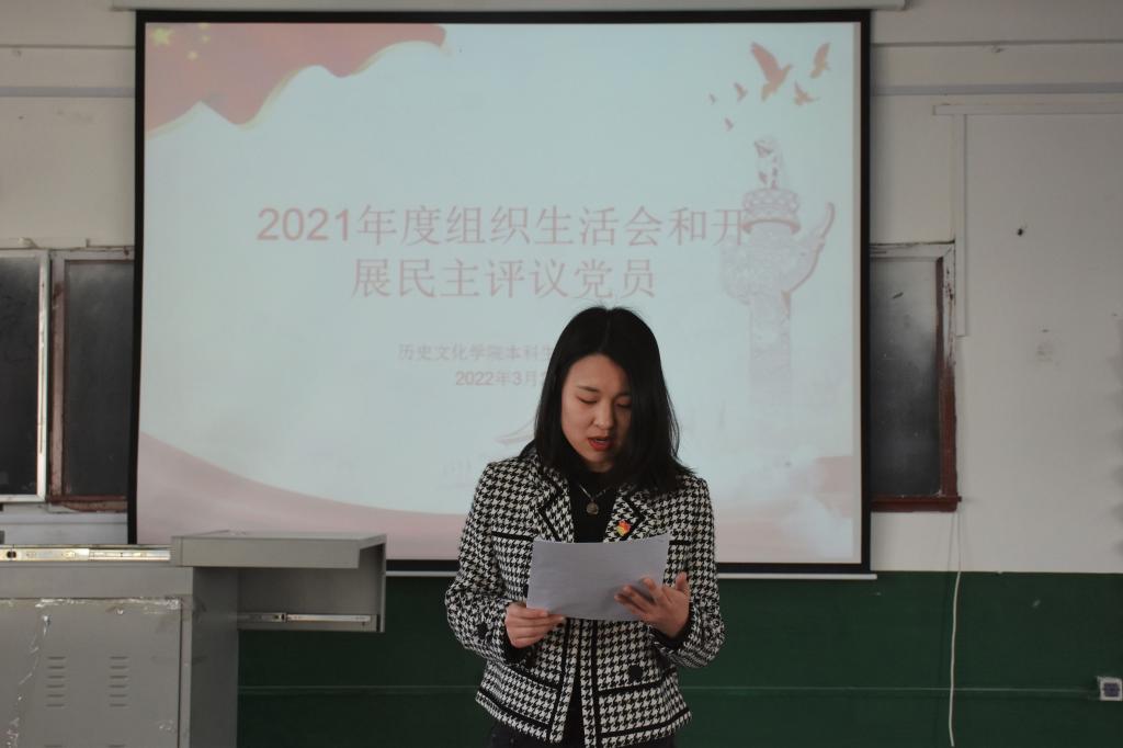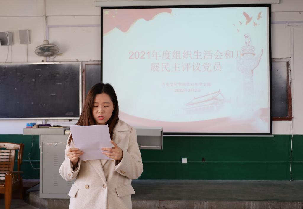 随后,组织委员刘贤贤代表支委汇报了2021年度党支部工作情况,并指出存在问题,提出整改措施。党支部副书记蔺琦琦带头查摆自身问题,进行深刻对照检查。支部党员逐一发言,认真开展批评和自我批评。同志们畅谈感悟收获、深刻检视不足,相互批评态度诚恳、意见中肯,达到了组织生活会预期的目的。接下来支部开展民主评议党员,全体党员填写测评表。
