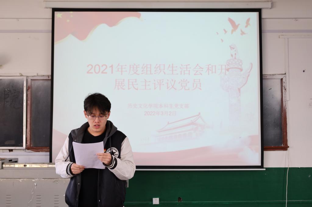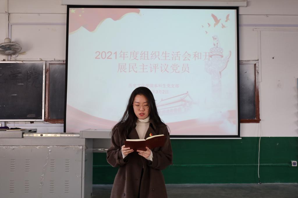 3月2日下午,幸运飞艇 本科生党支部在文史楼411教室召开2021年度“深入学习贯彻习近平新时代中国特色社会主义思想,学习贯彻党的十九届六中全会精神”专题组织生活会和民主评议党员。会议由本科生党支部宣传委员董经主持,全体党员参加。