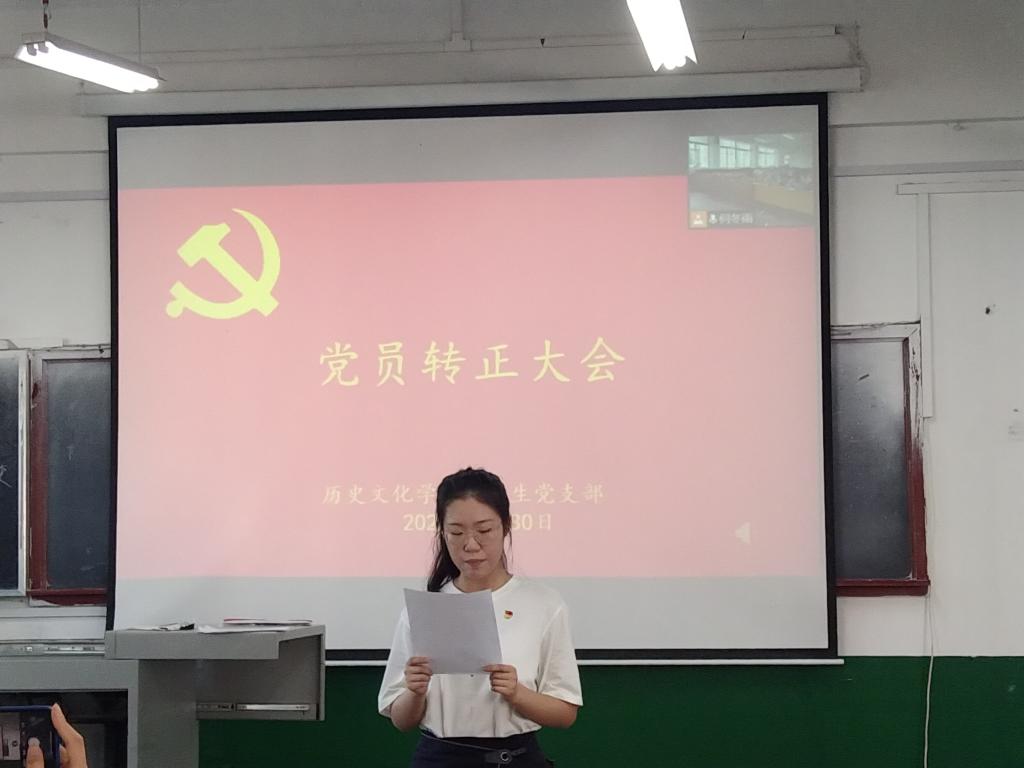 会议开始由本科生党支部副书记蔺琦琦同志介绍了葛沈荷等35名同志的基本情况,报告与会人数,介绍会议流程,并宣布转正大会开始。