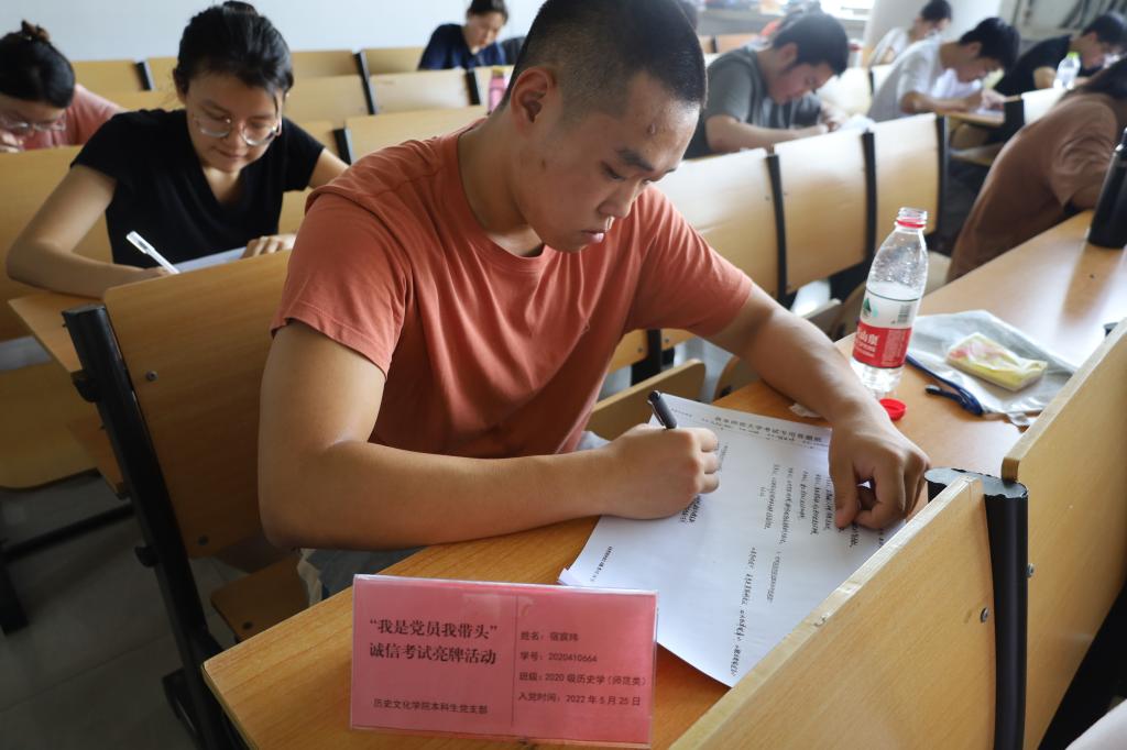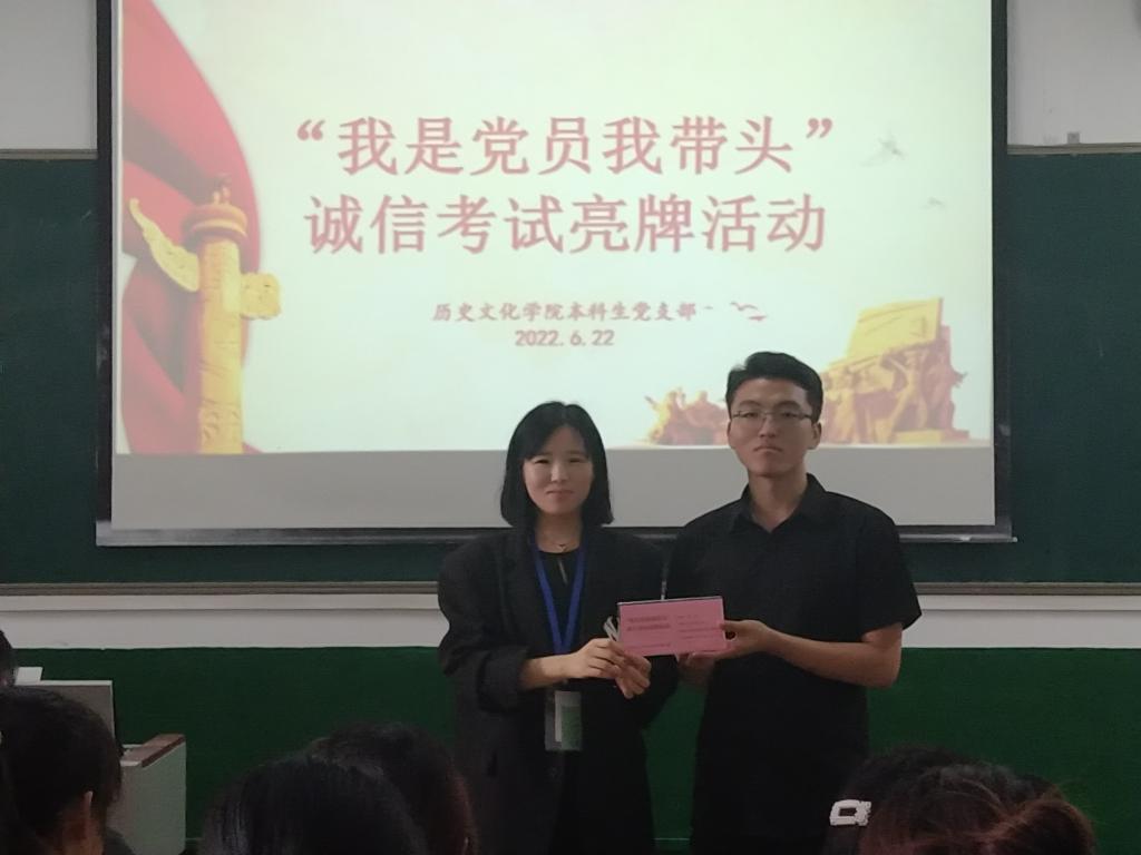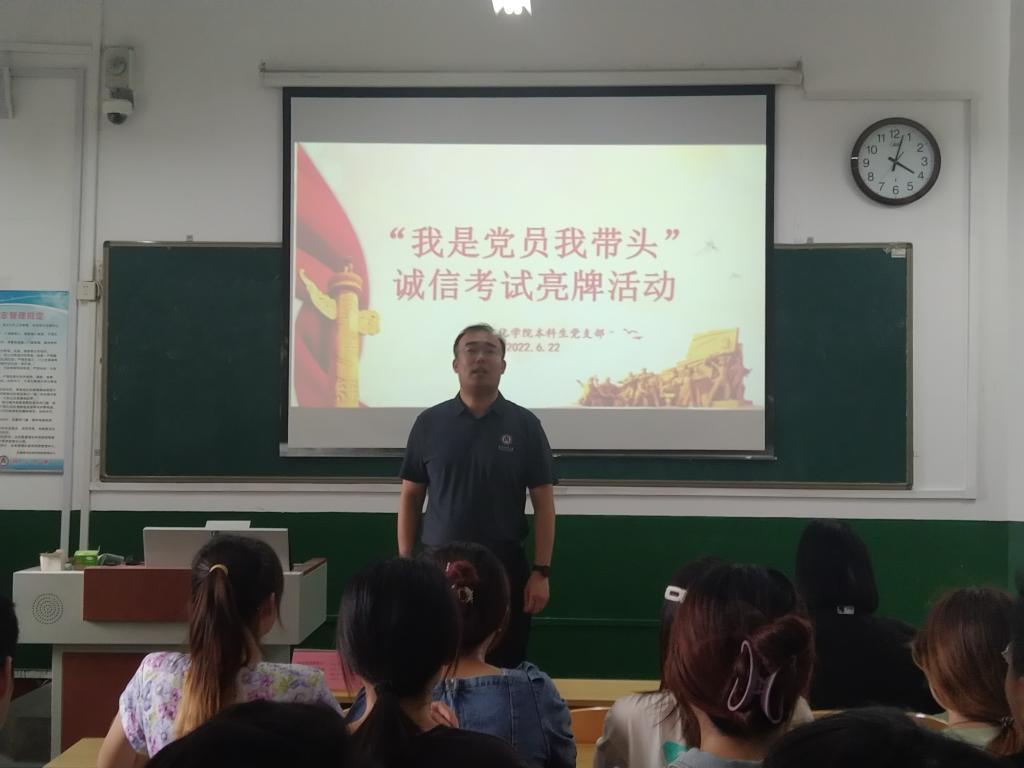 2022年6月22日下午,幸运飞艇 本科生党支部在文史楼309教室召开“我是党员我带头”诚信考试亮牌活动,会议由本科生党支部宣传委员董经主持,本科生党支部全体在校党员参加。