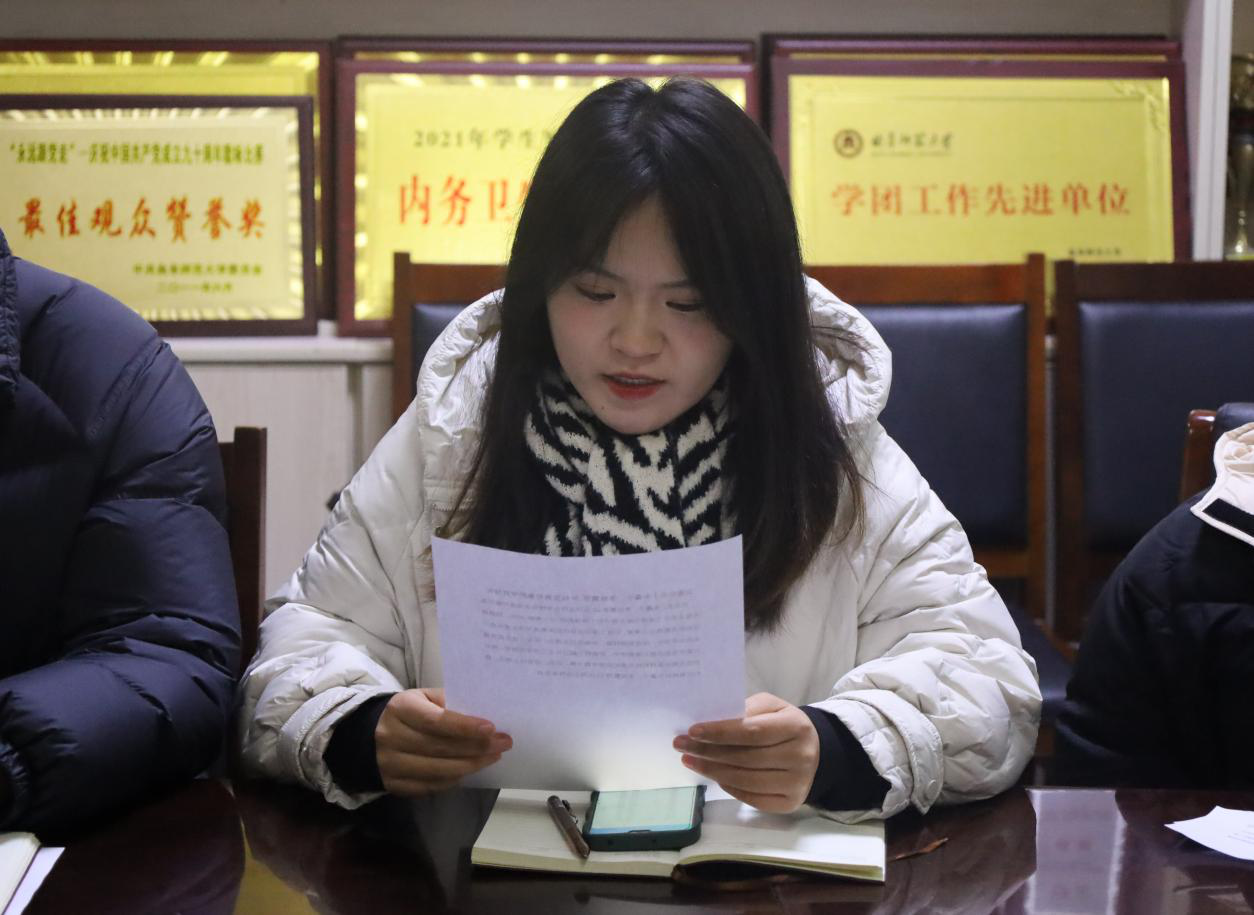 周津羽、李雨繁等22位同志依次宣读《入党志愿书》,汇报自己在发展对象培养期内的表现,找出差距,表明决心,说明有关问题。同时,发展对象期间的培养联系人分别介绍张周津羽、李雨繁等22位同志在发展对象期间的表现,表明本人是否同意介绍其加入中国共产党。