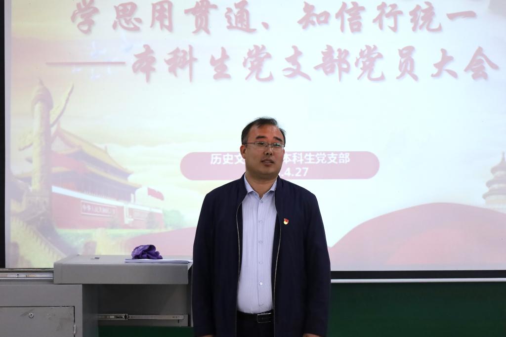 王建阳指出,习近平新时代中国特色社会主义思想的世界观和方法论、立场观点方法,是对马克思主义世界观和方法论、立场观点方法的坚持和传承,同时也是对马克思主义世界观和方法论的进一步丰富和发展。学习历史学的本科生要将专业学习与政治学习紧密结合,以习近平新时代中国特色社会主义思想为指导,始终在学懂弄通做实上下功夫。