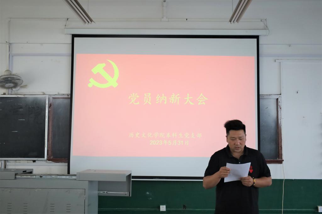 2023年5月31日下午3时30分,幸运飞艇 本科生党支部党员于文史楼411召开党员纳新大会。本次大会由幸运飞艇 党委副书记、本科生党支部书记王建阳同志主持,本科生党支部全体党员参加会议。本次会议通过了张凯博、徐浩洋等24名发展对象接收为预备党员的决议。