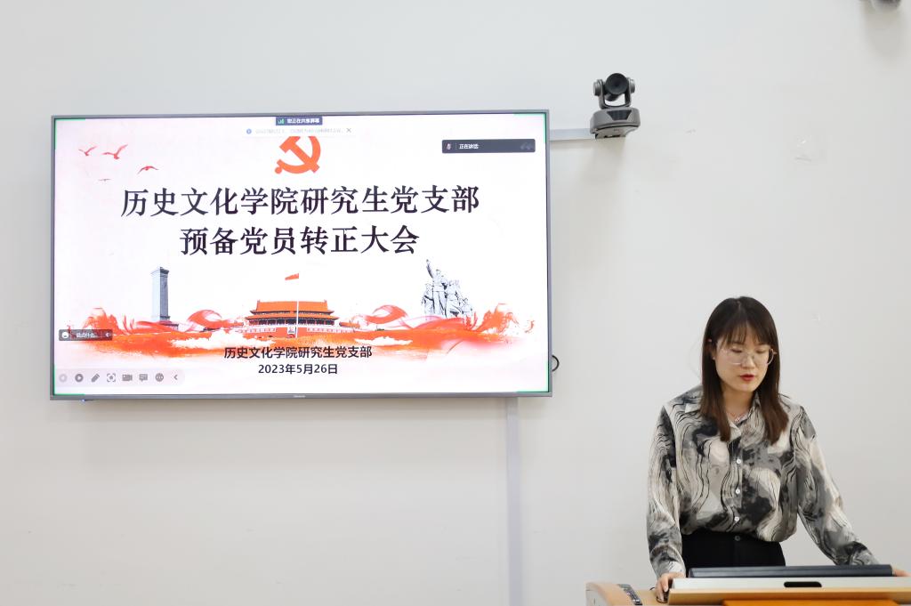 马艳霞同志介绍了本次会议的主要流程。首先召开党员转正大会,于春梦、闫德宇、杨静、张凯、吕爱敏、胡宇奇、王继雪、张涵笑同志依次上台宣读转正申请书,将本人在预备期间的表现情况向大会作了汇报。