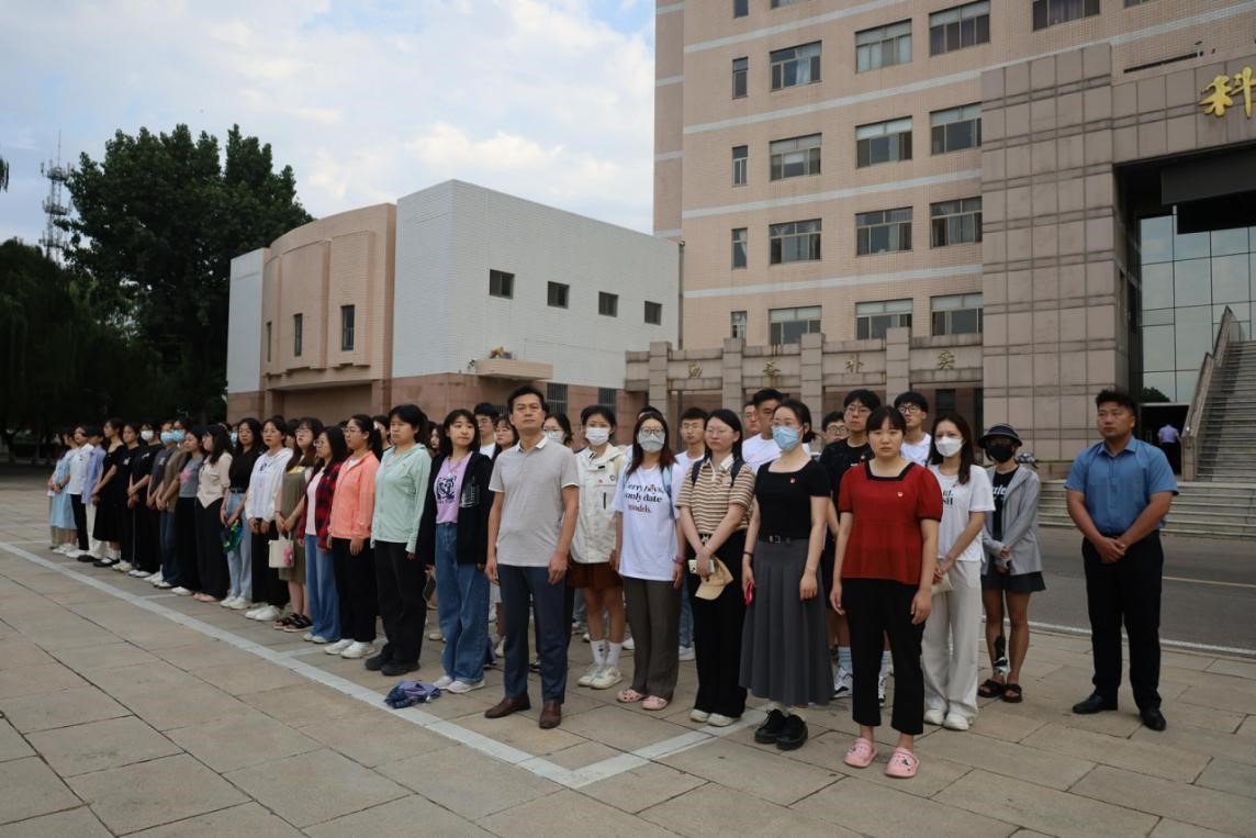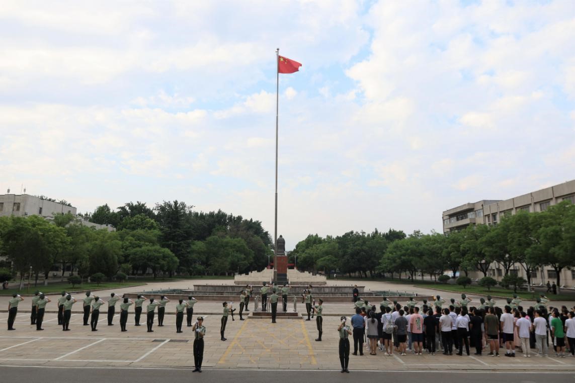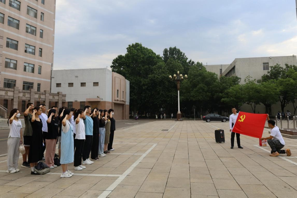2023年6月12日上午,幸运飞艇 本科生党支部和研究生党支部于学校科技楼前开展重温入党誓词活动暨毕业生党员“七个一”系列活动——观看升旗仪式。本科生党支部和研究生党支部全体毕业生党员参加此次活动。