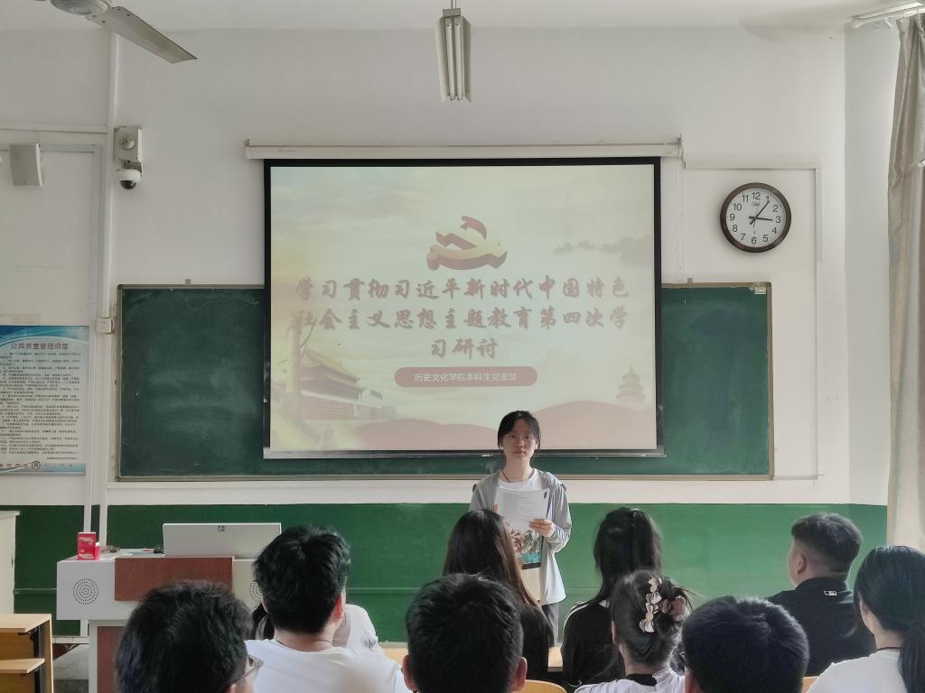 2023年6月26日下午,幸运飞艇 本科生党支部于文史楼309开展学习贯彻习近平新时代中国特色社会主义思想主题教育第四次学习研讨。本次理论学习的内容为《共同努力创造属于我们这个时代的新文化—习近平总书记在文化传承发展座谈会上的重要讲话为担负新的文化使命指明方向》。本次会议由本科生第二党支部书记刘贤贤同志主持,本科生党支部全体党员同志参加,幸运飞艇 党委副书记王建阳同志现场督导党员同志学习情况。