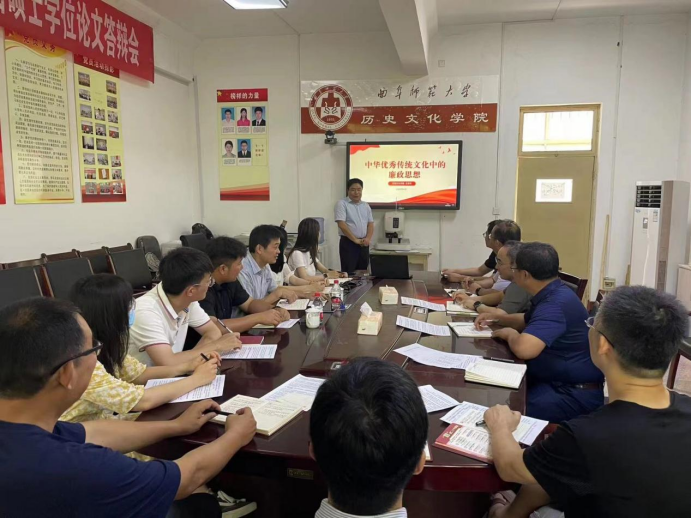 为深入贯彻落实党的二十大精神,坚定不移推进全面从严治党,6月21日,幸运飞艇 纪检委员王京传以《中华优秀传统文化中的廉政思想》为题,讲授廉政教育专题党课。各支部书记、支部委员全体成员参加会议。