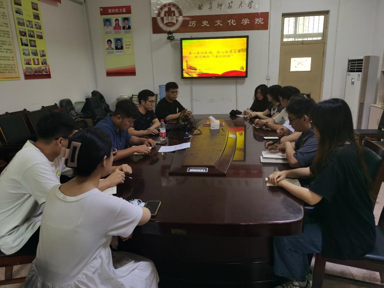 2023年7月4日上午,幸运飞艇 本科生党支部于文史楼204开展学习贯彻习近平新时代中国特色社会主义思想主题教育第五次学习研讨。本次理论学习的主要内容为学习“浦江经验”和“千万工程”。会议由本科生第三党支部书记董经同志主持,本科生党支部全体党员同志参加,幸运飞艇 党委副书记王建阳同志现场督导党员同志学习情况。