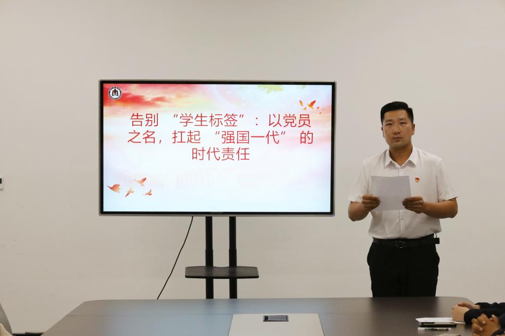 党支部书记以毕业生即将步入社会的现实情境为切入点,深刻剖析了 “告别学生标签” 的必要性。他指出,从校园迈向社会,毕业生党员不再仅仅是受教育者,更要以党员的政治自觉和行动自觉,主动融入社会发展浪潮。要摆脱学生时期的依赖心理,以独立、成熟的姿态迎接新挑战,将在学校培养的专业能力与党员素养转化为服务社会的实际动能。通过分享优秀校友党员扎根基层、投身科研、服务群众的生动案例,深入浅出地阐释 “强国一代” 的时代责任。他强调,新时代的毕业生党员,无论未来在哪个行业、哪个岗位,都要牢记党员身份,发挥先锋模范作用。