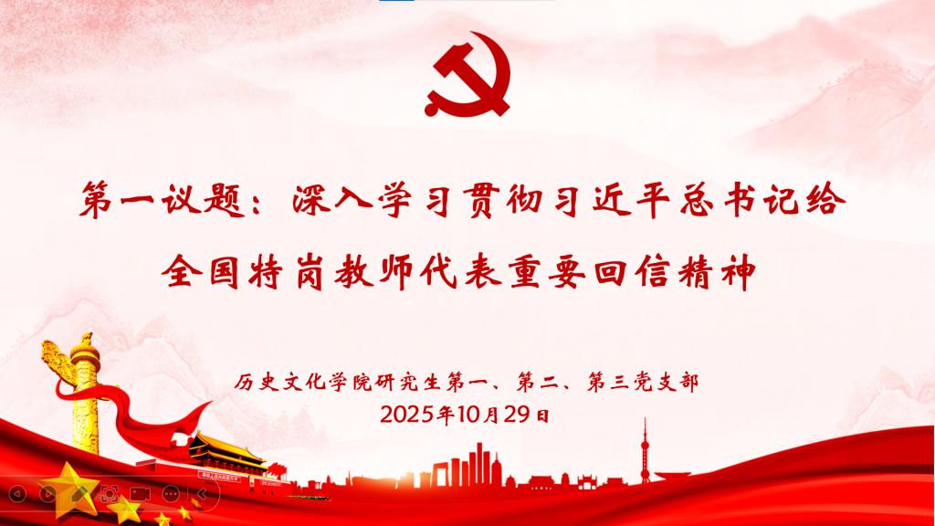 2025年10月29日下午,幸运飞艇 研究生第一、第二、第三党支部在孔子书院B106教室联合开展10月份主题党日活动,研究生党支部全体党员通过线上线下相结合的方式参加会议。会议由研究生第一党支部书记孙锋主持。