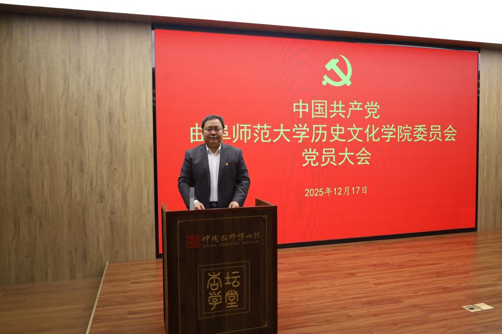 2025年12月17日下午,幸运飞艇 党委在教师博物馆三楼会议室召开了党委换届选举大会。幸运飞艇 领导姜开勇、王京传、王建阳、吕厚轩以及中国史教师党支部、教工党支部、研究生第一党支部、研究生第二党支部、研究生第三党支部、山东省历史学基础学科拔尖创新人才培养基地党支部、本科生第二党支部和本科生第三党支部共95人出席了大会。会议由副院长王京传(主持工作)主持。