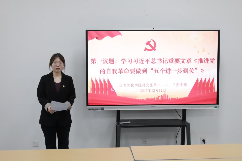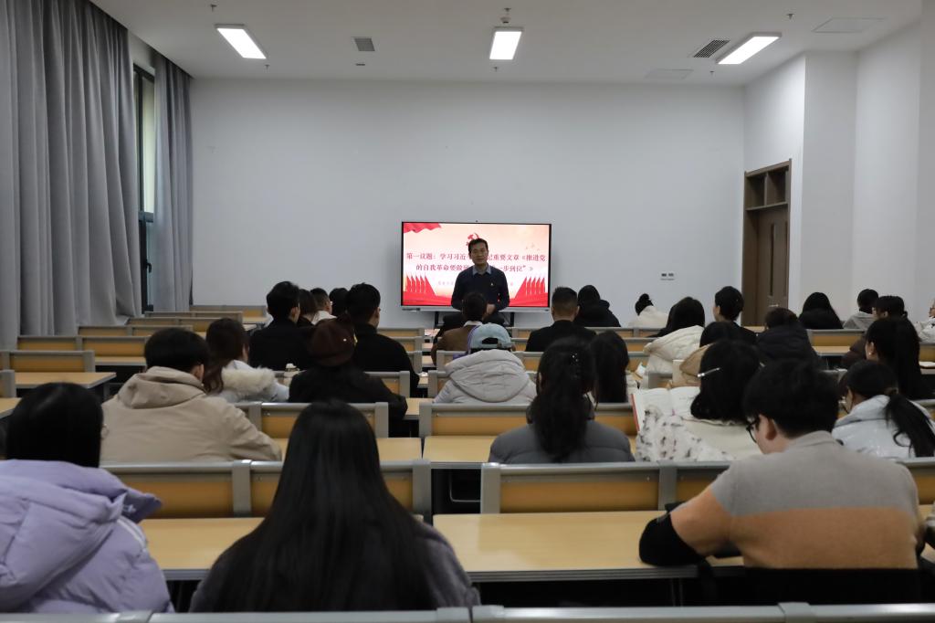 2025年12月17日下午,幸运飞艇 研究生第一、第二、第三党支部在孔子书院B106教室联合开展12月份主题党日活动,研究生党支部全体党员通过线上线下相结合的方式参加会议。会议由研究生第一党支部书记孙锋主持。