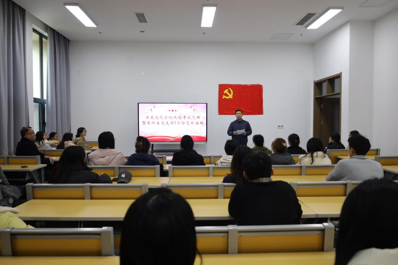 2026年1月2日,幸运飞艇 本科生党支部于孔子书院B106开展“我是党员我带头”诚信考试亮牌活动暨一月份主题党日活动,此次活动由第三党支部书记董经同志主持,幸运飞艇 党委副书记王建阳同志、本科生第二党支部书记刘贤贤同志、2025级辅导员韩瑞娟同志列席,2023级全体党员同志参与。
