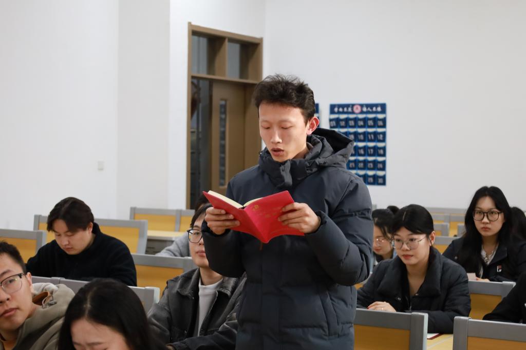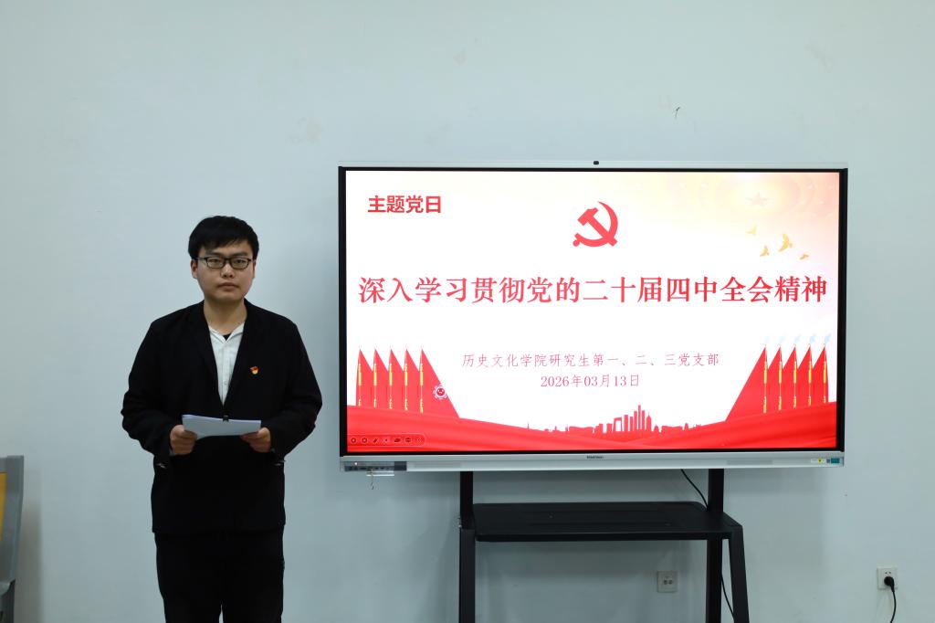 会上,研究生第二党支部魏明宇、第一党支部王昊结合自己的生活与学习,分别进行了学习发言。孙锋对本次活动进行了总结,他指出,全体党员同志要认真学习党的二十届四中全会精神,同时也要注意把学习成果转化为实际行动,切实做到愿担当、敢担当、善担当,在专业领域深耕细作、锤炼本领,同时积极将专业所长与国家发展需求相结合,以实际行动为实现“十五五”良好开局、推进中国式现代化建设贡献青年党员的青春力量。