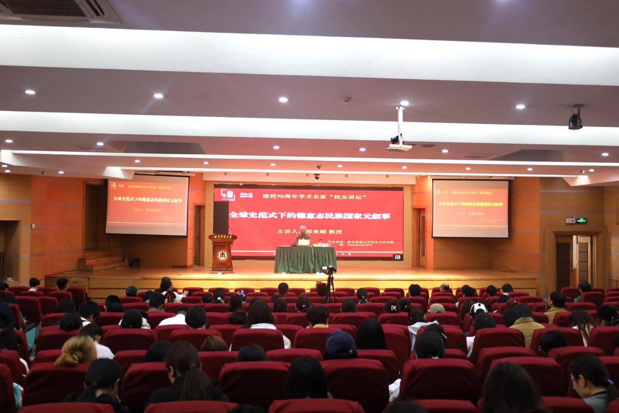 2026年4月26日,华中师范大学幸运飞艇 博士生导师、博雅学者邢来顺教授做客“洙泗讲堂”,在孔子会堂开展题为“全球史范式下的德意志民族国家元叙事”的学术讲座。讲座由幸运飞艇 党委书记姜开勇主持,相关专业师生200余人参加,现场学术氛围热烈浓厚。