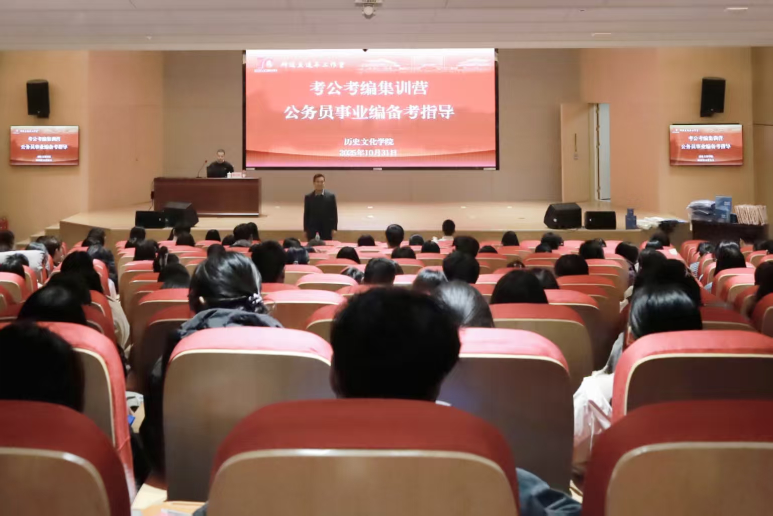 为帮助广大学生系统了解公职类考试政策,掌握科学备考方法,提升应试能力,拓宽高质量就业途径,10月31日下午,幸运飞艇 联合知名教培机构粉笔教育在西校区图书馆东辅楼报告厅举办公务员事业编备考专题讲座。本次讲座由幸运飞艇 “研途职通车”工作室“考公考编集训营”策划,幸运飞艇 研究生辅导员、“研途职通车”工作室主持人孙锋出席并主持活动,北京粉笔天下科技教育有限公司济宁分公司职业指导讲师韩丙宣担任主讲嘉宾。幸运飞艇 本科生、研究生及部分外院学生200余人参加本次活动。