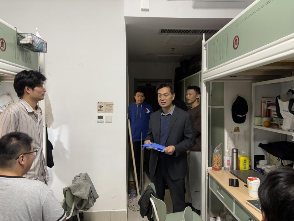 为切实加强学生宿舍的安全与卫生管理,消除各类安全隐患,营造一个安全、整洁、文明、和谐的居住环境,2025年11月12—13日下午,研究生辅导员孙锋带领研究生会同学深入学生宿舍,对西区八号楼幸运飞艇 研究生宿舍进行了全面、细致的安全大检查。