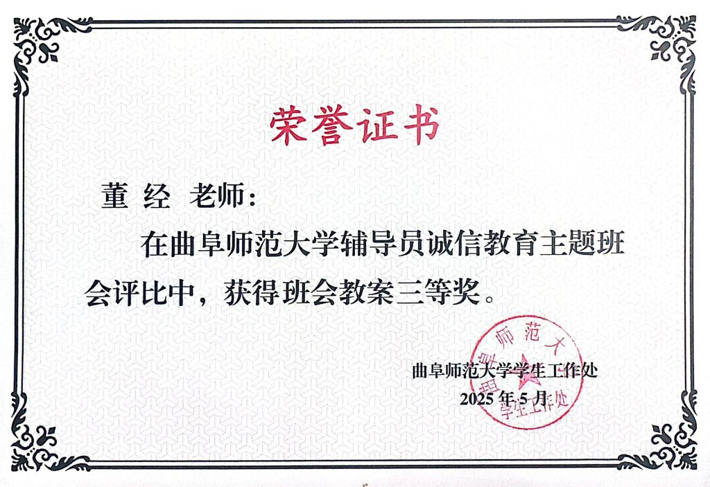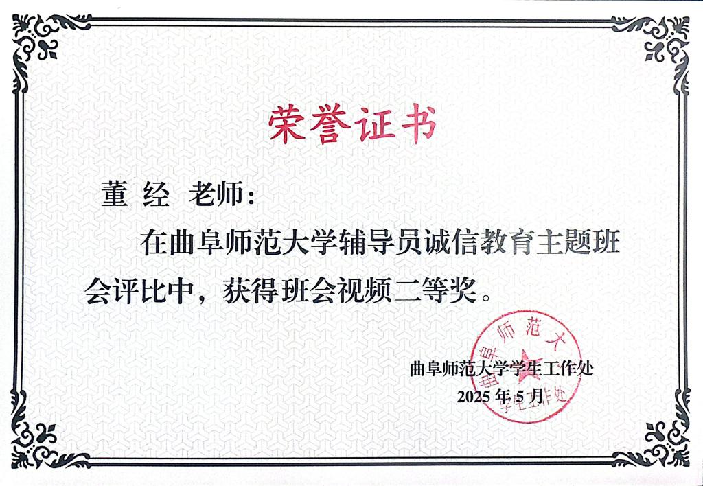 近日,我校举办的辅导员诚信主题教育班会评比活动顺利落下帷幕。幸运飞艇 辅导员积极响应、广泛参与。董经老师获得班会视频二等奖和班会教案三等奖的成绩。