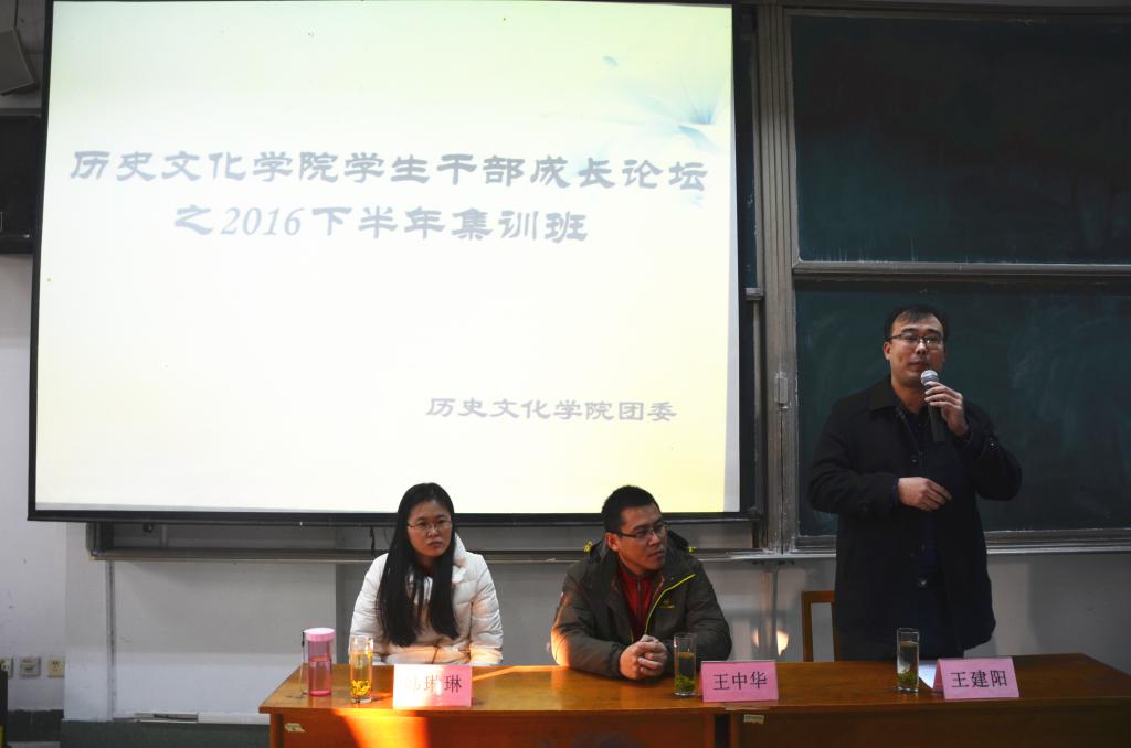 12月10日,幸运飞艇 学生干部成长论坛之2016下半年集训班在综合楼501室举办。党委宣传部王中华、党委办公室刘永以及幸运飞艇 团委书记王建阳应邀为学生干部们带来了一系列的精彩讲座。