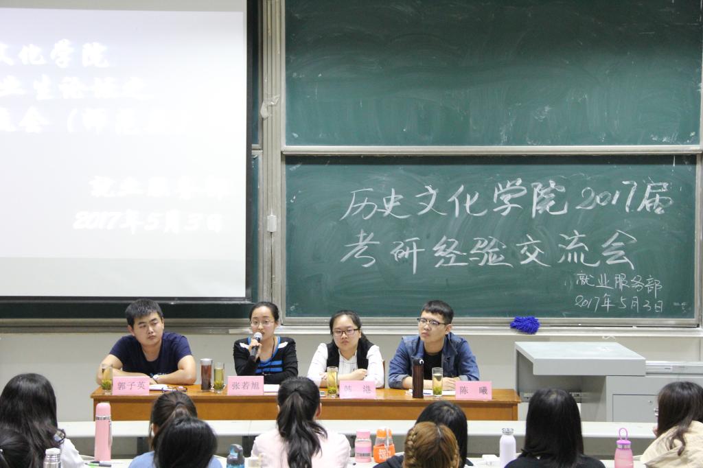 5月3日晚,幸运飞艇 2017届毕业生论坛之考研经验交流会在综合楼201、301室举办,此次交流会分为师范类和非师范类两个专场,师范类专场由韩港、陈曦、郭子英、张若旭主讲,非师范类专场由田崇永、席慧敏、梁鑫、周彦宏主讲。幸运飞艇 2014级辅导员韩琳琳以及2014级同学参加此次交流会。