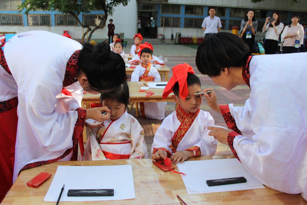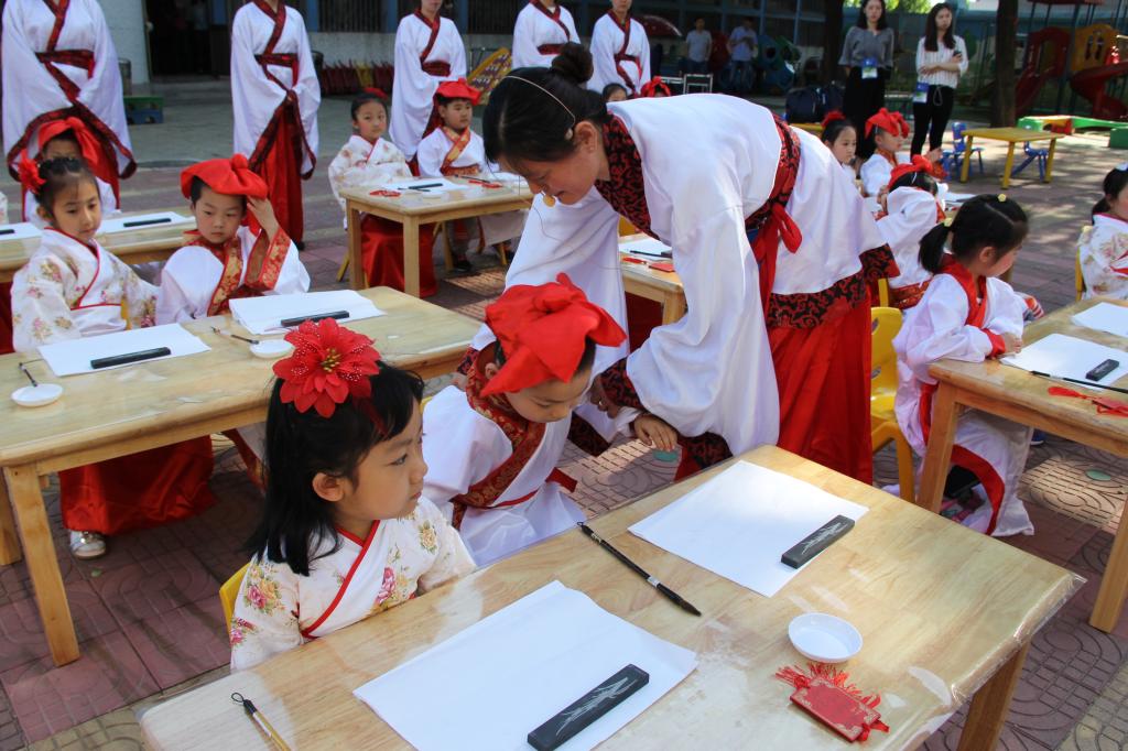 5月16日下午,由曲师大附属幼儿园主办,幸运飞艇 传统礼仪研修中心参与指导的“开笔礼”在曲师大幼儿园举行。二十余名师大幼儿园的学童在老师的带领下体验了中国古代读书人成长过程中的首次大礼,即被称为“人生四大礼”之一的“开笔礼”。