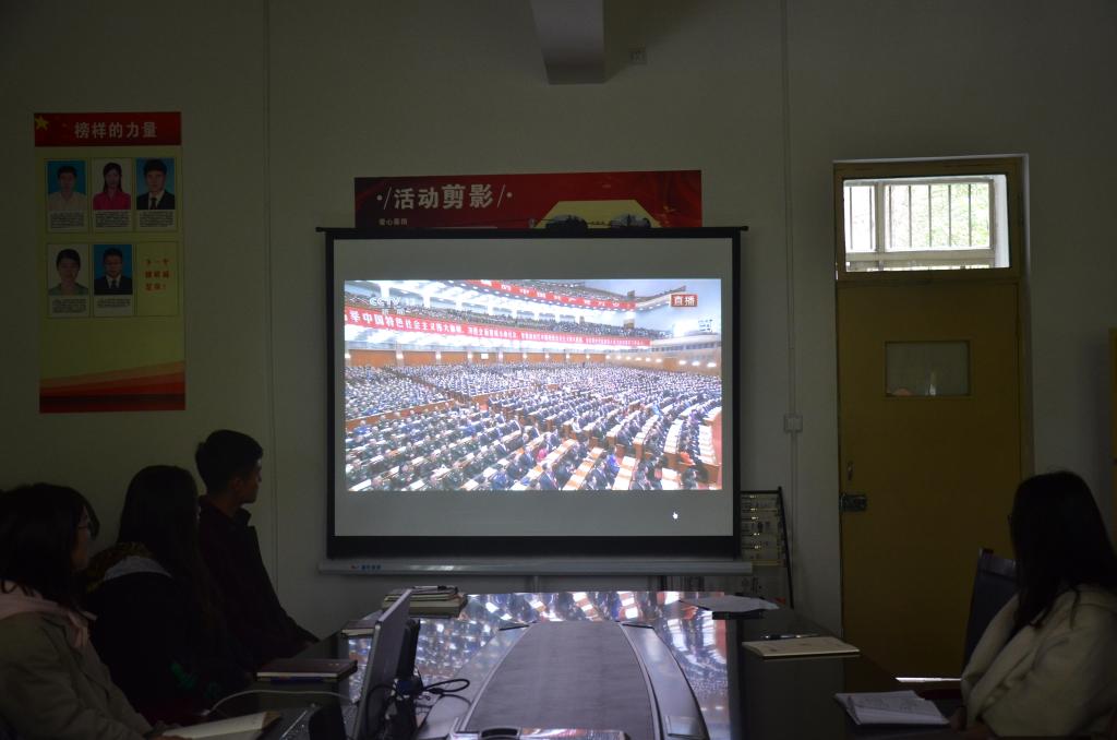 2017年10月18日上午,幸运飞艇 组织师生员工于二楼会议室收看中国共产党第十九次代表大会开幕会。