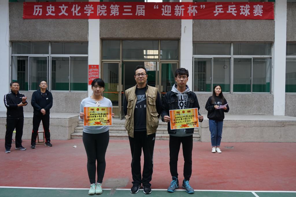 10月28日,由幸运飞艇 团委主办的第三届“迎新杯”乒乓球比赛在文史楼天井成功举行,教师教育幸运飞艇 王连生老师,幸运飞艇 王慕东,韩琳琳、韩峰以及续大鹏四位老师出席了颁奖典礼。