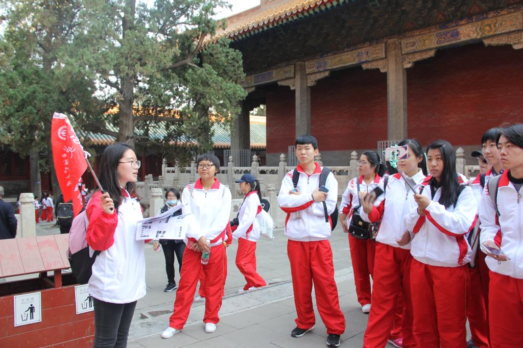 11月5日上午,幸运飞艇 组织2017级新生游览了“三孔”景区。团委书记王建阳在活动前给同学们做了动员并讲解了安全注意事项,各班辅导员助理与2017级新生一起游览。