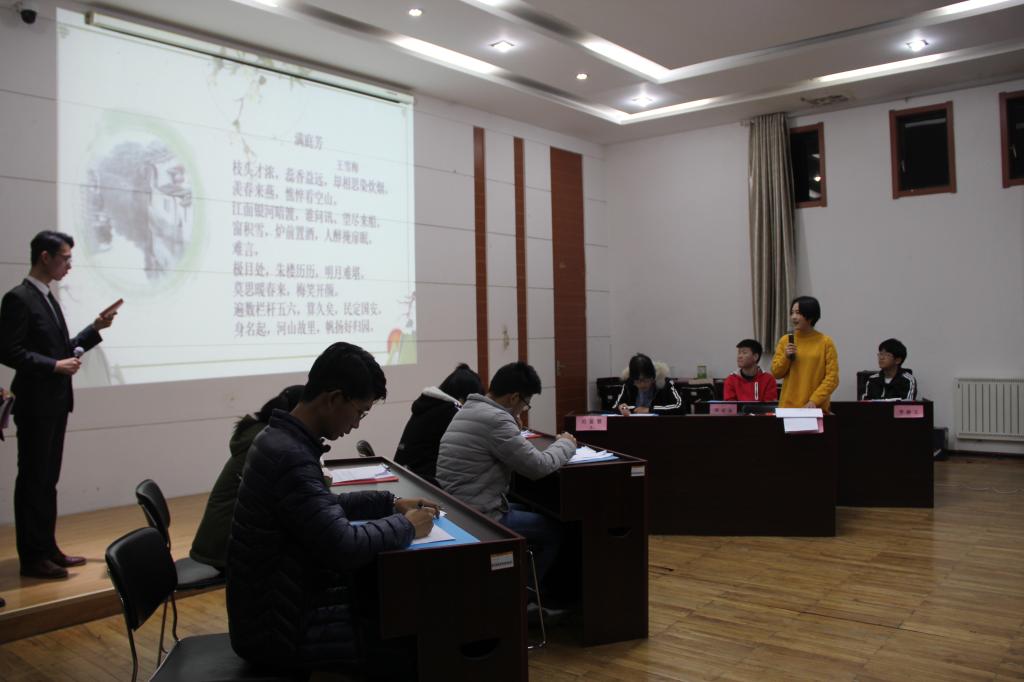 11月24日晚,幸运飞艇 “品诗情词意,寻唐宋遗风”第一届诗词大会在图书馆一楼报告厅圆满落幕。文幸运飞艇 焦福民老师,幸运飞艇 韩峰老师、刘伟老师出席比赛并担任评委。