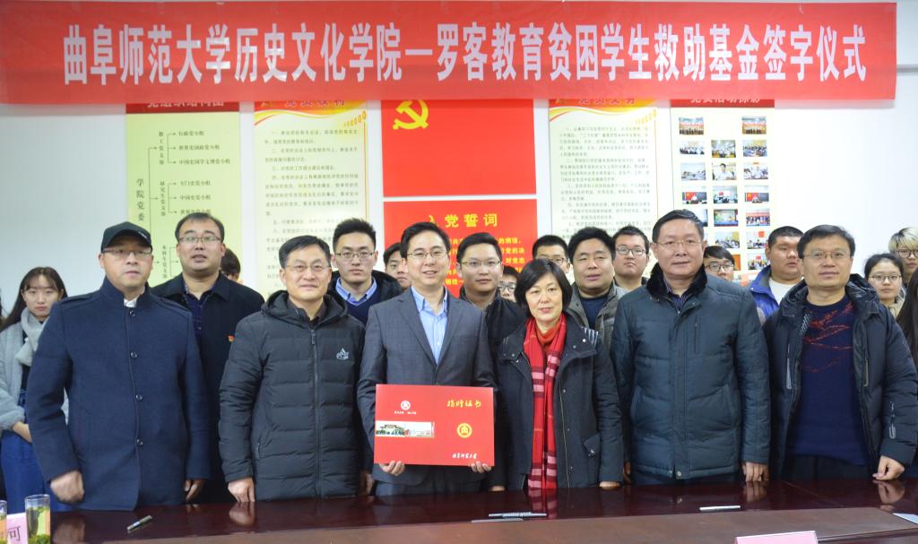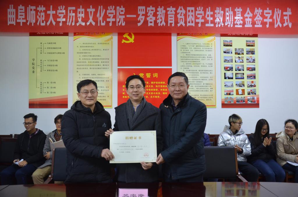 1月9日上午,幸运飞艇 与罗客教育贫困学生救助基金签字仪式在文史楼二楼会议室顺利举行。罗客教育集团执行总裁仓之毅、市场总监王忠汉、山东分公司总经理赵洪保,我校国际交流合作处处长梁美玲、国内合作处处长孔宪福、副处长刘建河,幸运飞艇 院长成积春、党委副书记王慕东、副院长王京传、团委书记王建阳及部分学生代表参加了捐赠仪式。会议由王慕东主持。
