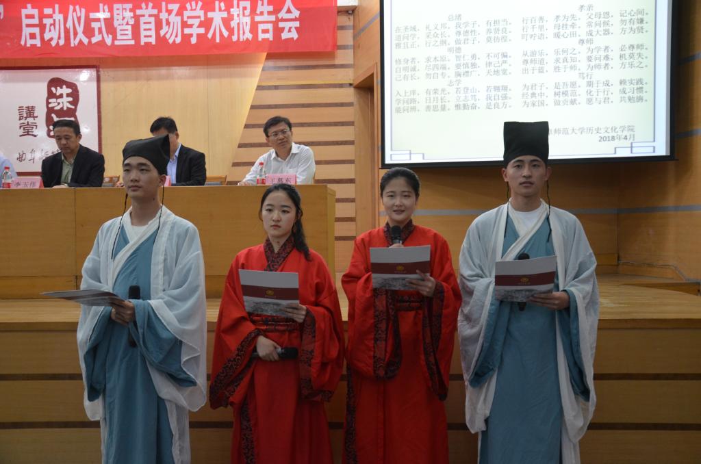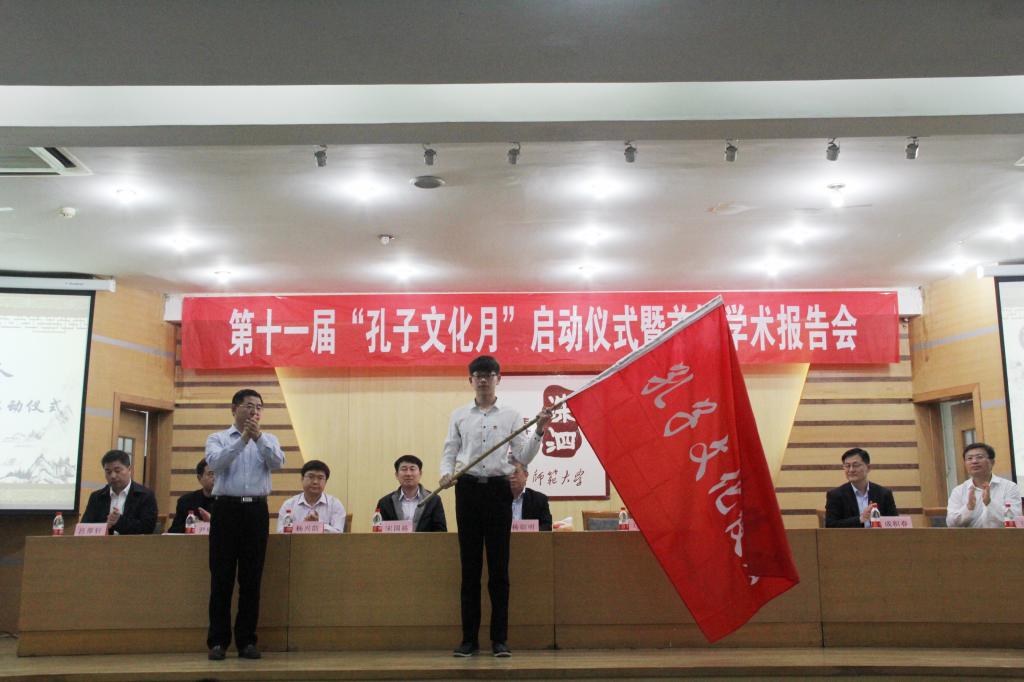 4月19日晚,曲阜师范大学第十一届“孔子文化月”启动仪式暨首场学术报告会在孔子会堂举行。校党委副书记马善军出席仪式,为孔子文化使者代表授旗。学校相关部门和幸运飞艇 相关领导出席了仪式。