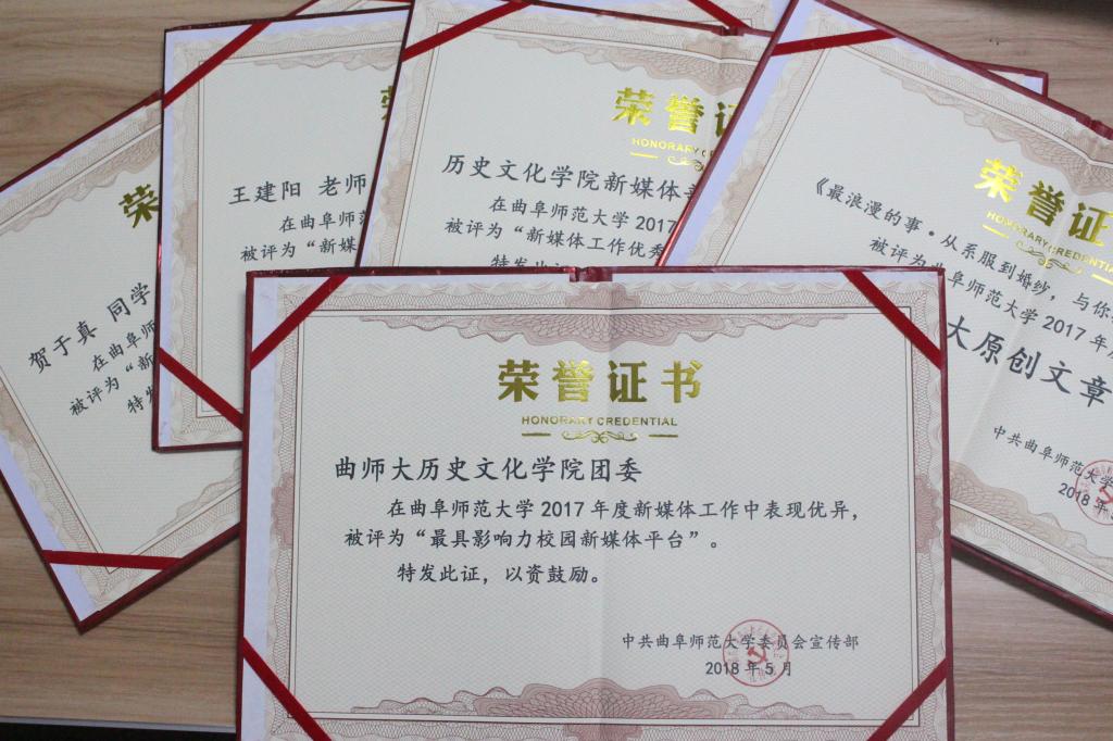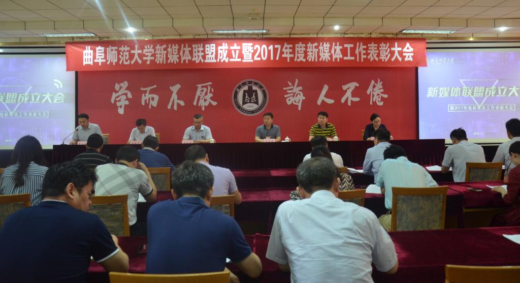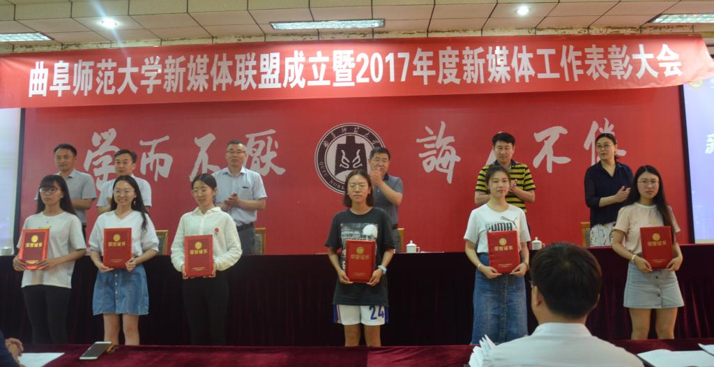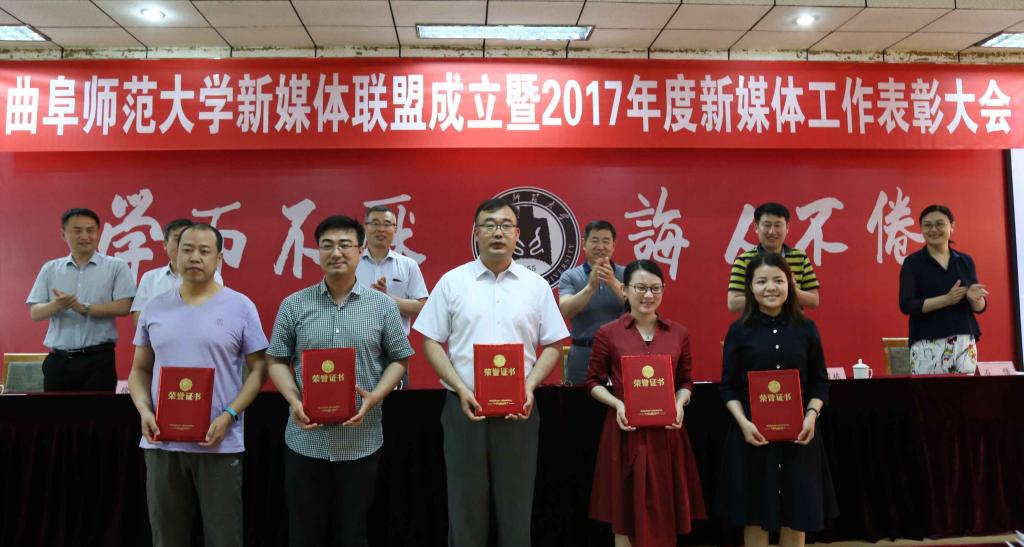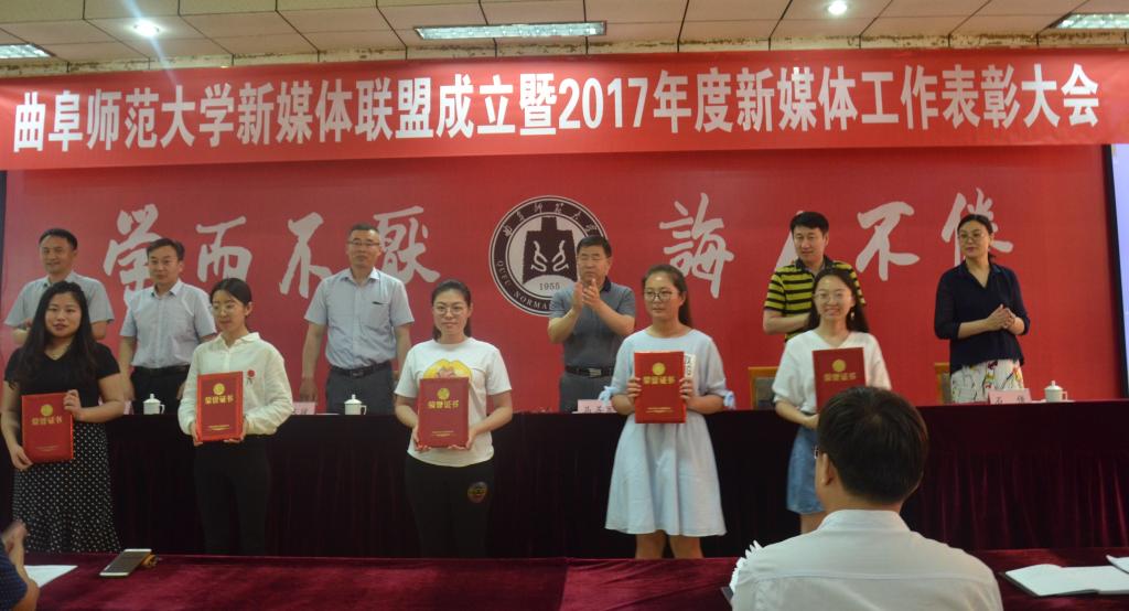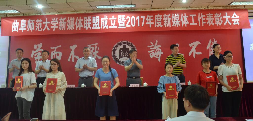 5月17日下午,我校新媒体联盟成立仪式暨2017年新媒体工作表彰大会在曲阜校区科技楼二楼会议室、日照校区图书馆报告厅举行。大会经选举产生9个常务理事单位,27个理事单位,幸运飞艇 成功当选首届常务理事单位。幸运飞艇 新媒体团队在我校2017年度新媒体工作中表现优异,幸运飞艇 团委荣获“最具影响力校园新媒体平台”称号,团委书记王建阳荣获“新媒体工作优秀指导老师”称号,贺于真荣获“新媒体工作先进个人”称号,新媒体部荣获“新媒体工作优秀团队”称号,《最浪漫的事·从系服到婚纱,与你执手曲园》被评为我校2017年度新媒体推送“十大原创文章”。