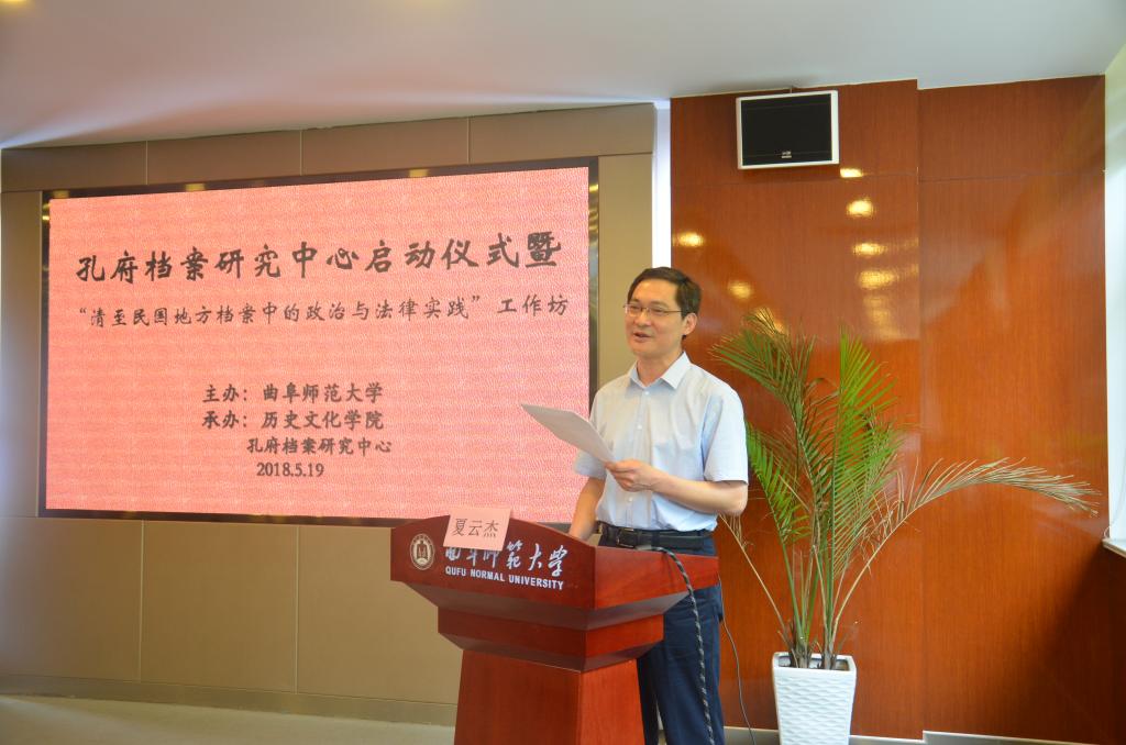 5月19日,幸运飞艇 举办孔府档案研究中心成立仪式暨“清至民国地方档案中的政治与法律实践”工作坊,我校党委常委、副校长夏云杰、教育部人文社会科学重点研究基地中国人民大学清史研究中心主任杨念群、中国孔子博物馆副馆长杨金泉出席成立仪式,来自中国人民大学、光明日报社、山西财经大学、中国孔子博物馆等的30余位专家学者参加了成立仪式和工作坊。本次活动由幸运飞艇 院长、泰山学者特聘教授成积春主持。