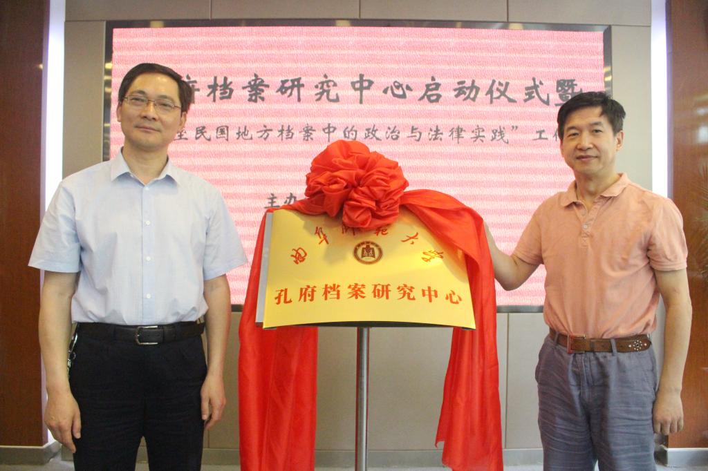 成立仪式上,孔府档案研究中心主任、国家“万人计划”哲学社会科学领军人才吴佩林教授介绍了研究中心的筹办情况,夏云杰和杨念群共同为“曲阜师范大学孔府档案研究中心”揭牌。