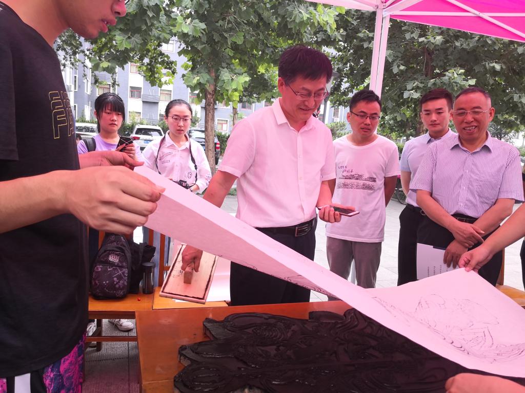 活动中为大家展示了碑刻传拓技艺体验,古籍修复技艺演示,木板年画刷印活动,抄写经典,古籍装具展示五部分。同学们亲自临摹,抄写经典;体验历史悠久的碑刻传拓和木板年画刷印;观看古籍修复技艺和古籍装具展示。同时,国家图书馆、国家古籍保护中心还向曲阜师范大学师生赠送了《中华传统文化经典百篇》活页文选,通过将古籍传统融入青年学生生活,在校园中传播了中华民族优秀的传统文化。