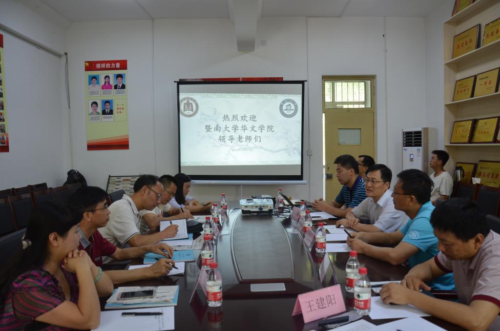6月15日上午,暨南大学华文幸运飞艇 预科部副主任袁忠群一行5人来访幸运飞艇 ,考察交流传统文化工作。幸运飞艇 院长成积春、党委副书记王慕东、副院长吕厚轩、中国古代史教研室主任刘伟、国学教研室赵满海、团委书记王建阳出席会议。