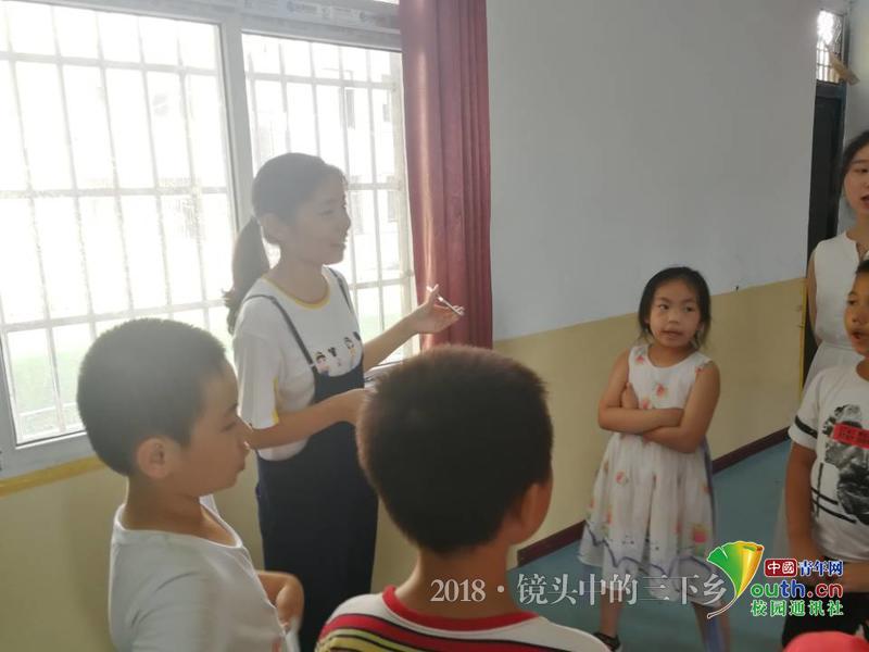 队员们将暑期里的学习分为两部分,首先是对孩子进行学业上的一些辅导。第一天辅导结束时有小朋友送给队员们糖吃,对他们说谢谢姐姐,问他为什么那么开心呀,他说:“妈妈走了,爸爸也不在家,好久没人陪我一起写作业了。”那一刻,队员们吃的糖是甜的,心里却感到一丝苦涩,但这也让队员们坚定了帮助他们的决心。 之后队员们将带领孩子们学习研读一些经典。单亲家庭的孩子多少都会受到来自家庭的影响,队员们希望能够将这种影响和伤害降到最低。经过讨论队员们最终选择了《弟子规》。队员们先是纠正字音,解释字义,然后举生活中的实例来告诉他们其中的道理。《弟子规》中蕴含着“ 孝悌仁爱”等思想,在队员们的辅导下,希望他们可以将这些思想运用到与同学和谐友好相处、孝敬家中亲人等方面。