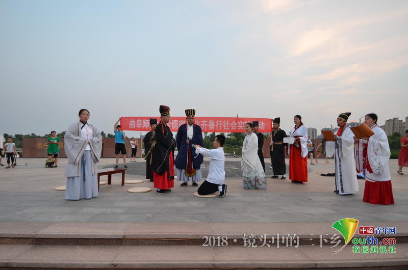 “谦谦君子礼 ,悠悠儒家行。”7月18日—21日,幸运飞艇 “儒家文化齐鲁行”社会实践团队前往菏泽、泰安、曲阜等地开展有关推广家庭成人礼可行性调查的社会实践活动。实践队员们身体力行传扬儒风,在这片文化圣地之上,一路撒播传播文化之种,用儒家文化滋养青春。
