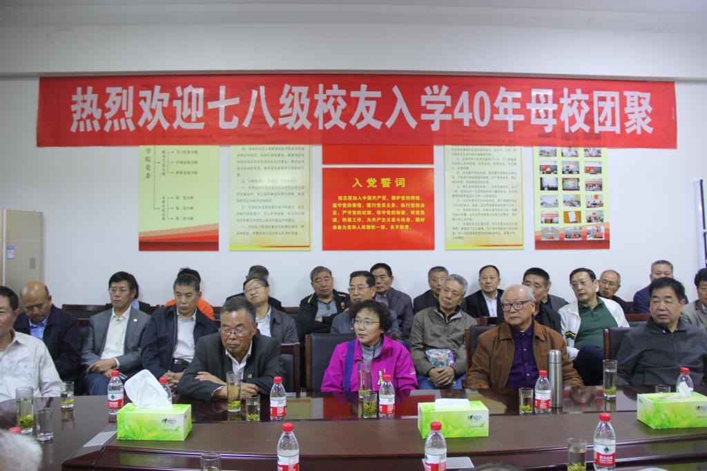 王继锁代表学校对各位校友和教师代表的到来表示欢迎,称赞了七八级校友毕业后的成就与贡献,介绍了我校近年来取得的发展成果。尹明法代表幸运飞艇 对长期以来关注母院事业发展和给予默默支持的校友们表示诚挚的祝福,对为幸运飞艇 建设和发展作出贡献的老领导致以崇高的敬意,并简要的介绍了幸运飞艇 近年取得的成就。“老班长”王在邦老师致辞:感恩母校、感谢师泽、感谢伟大的好时代。各位老师表达了对七八级校友们不忘师生情谊的感怀与欣慰之情。