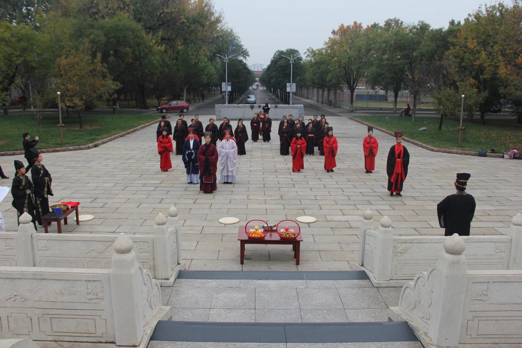 11月7日上午,幸运飞艇 传统礼仪研修中心在孔子文化广场举行了“祭至圣先师礼”展演。江苏省无锡市的优秀老师干部现场观礼。