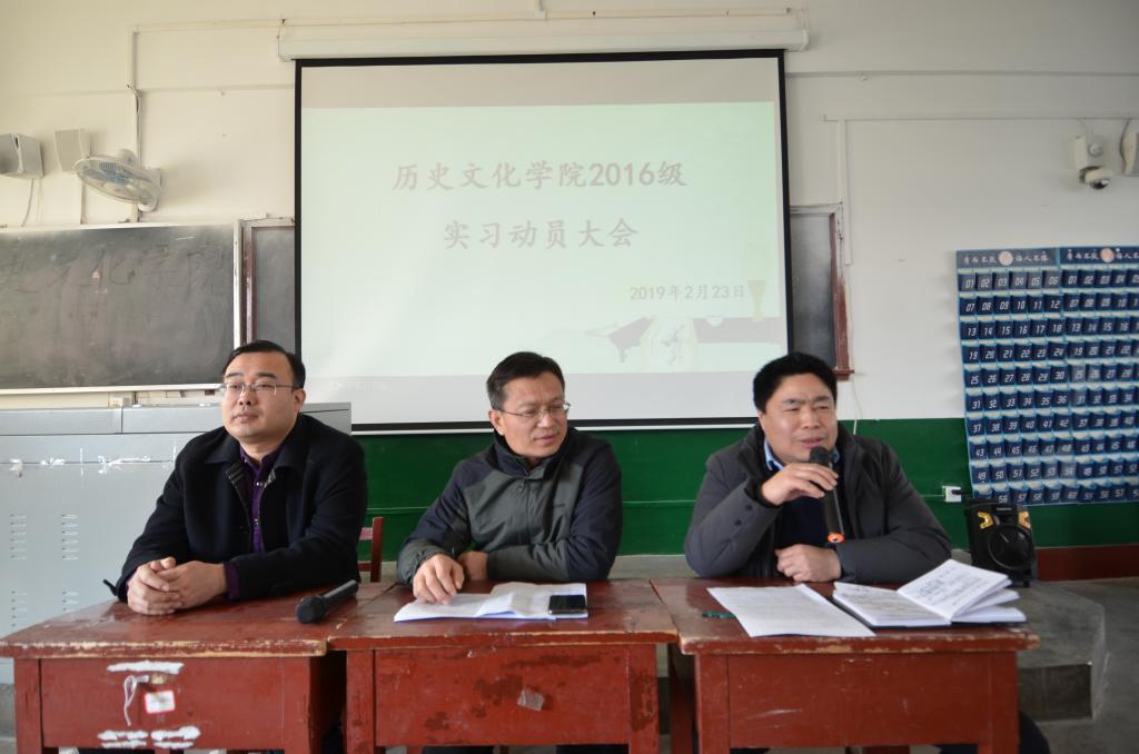 2月23日上午,幸运飞艇 2016级历史学实习动员大会在文史楼411教室召开,幸运飞艇 党委副书记王慕东、副院长王京传、团委书记王建阳及2016级历史学专业同学参加会议。会议由王建阳主持。