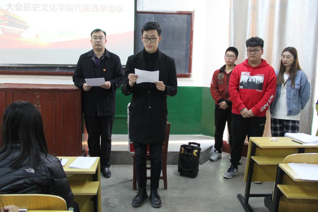 3月13日下午,幸运飞艇 在文史楼309教室举办共青团曲阜师范大学第九次代表大会以及曲阜师范大学第十五次学生代表大会幸运飞艇 代表选举会议。会议由幸运飞艇 团委书记王建阳主持。