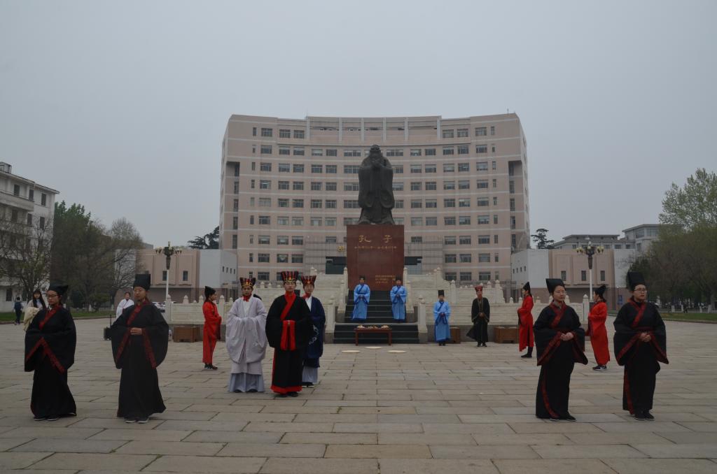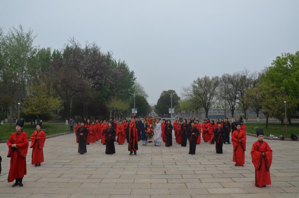4月12日下午,幸运飞艇 传统礼仪研修中心在孔子文化广场为江苏省优秀教师干部举行了“迎宾礼”和“祭至圣先师礼”展演。