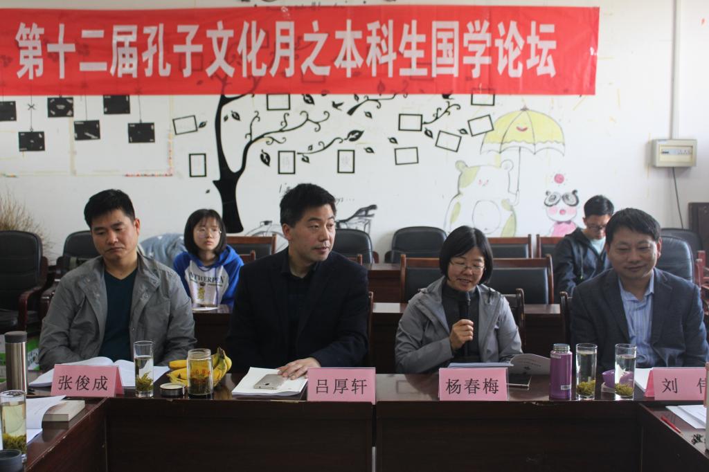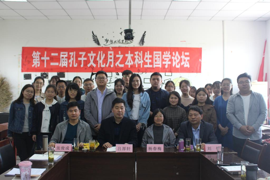4月20日上午,由幸运飞艇 《论语》研修学社承办的第十二届孔子文化月系列活动之本科生国学论坛在文史楼520教室举行。《论语》研修学社成员、2015级和2018级国学班部分同学参加论坛,论坛由郑双主持,邀请吕厚轩、张俊成、杨春梅、刘伟老师出席。