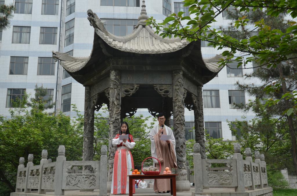 4月21日,幸运飞艇 洙泗学社承办的花朝节系列活动在曲阜师范大学综合楼北举行。