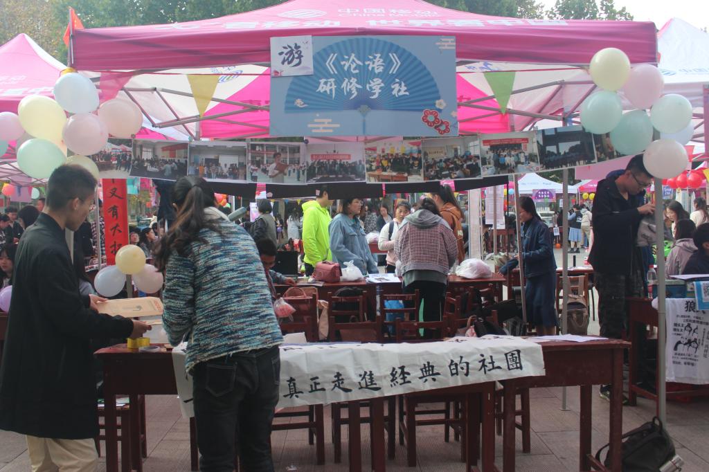 10月27日,我校在大学生活动中心门前广场举行2019年百团大战,幸运飞艇 洙泗学社、《论语》研修学社、史院学社、文博学社、拾光文化创意社、辩论社、普通话协会、羽毛球协会积极参加,各显神通。