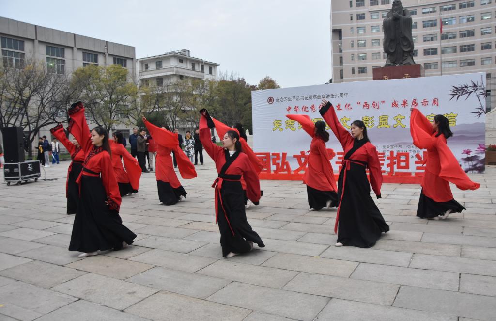 据悉,本次展示周活动展示时间为11月2至11月30日,分为“振铎传薪”、“儒 韵悠长”、“为国弘文”三个篇章,内容由系列展演、成果展示、交流互动三类组成,从多角度展现中华优秀传统文化的厚重底蕴和独特魅力。 通过该活动,为同学们了解和传承中华优秀传统文化提供了良好的平台,推动更多师生加入到中华优秀传统文化的创新发展中来,更加深刻的贯彻落实习近平总书记的重要讲话。