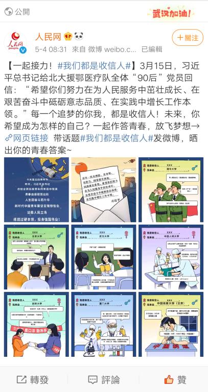 本次活动以五四精神为背景,内容丰富、形式多样,幸运飞艇 师生通过微信公众号、微博等网络载体,积极参与评论互动,助力主题活动,向先贤学习,发扬五四精神。