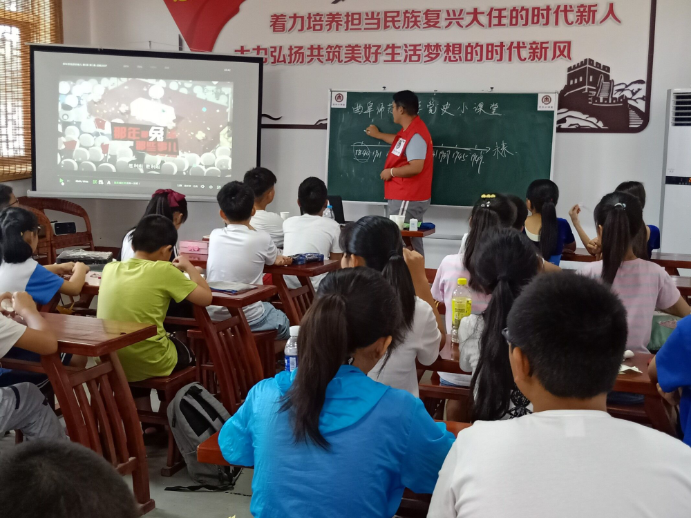 团队志愿者发挥历史学特长,结合当地学生的实际情况,设计了“党史国史家乡史之红色精神教育课”、“承前启后,继往开来之红色经典诵读课”、“国旗党旗知多少专项课程”等内容形式丰富多样的系列课程。志愿者通过提问的形式向学生普及了党史、国史知识和国旗党旗的相关知识等,希望更好地弘扬与传播爱国主义精神。同时,志愿者还增加了手工制作国旗党旗、红色经典故事课、“品味革命经典,感悟百年党史”诵读等活动,使学生在娱乐中进一步了解革命历史,培养爱国情怀。