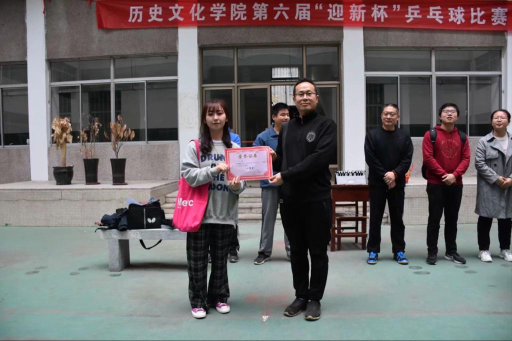 11月1日,由幸运飞艇 工会、研究生会及学生会联合举办的第六届“迎新杯”乒乓球比赛在北操场乒乓球场举办。教育幸运飞艇 办公室主任王连生老师、幸运飞艇 韩锋老师、谢经虎老师、张俊成老师出席颁奖典礼。